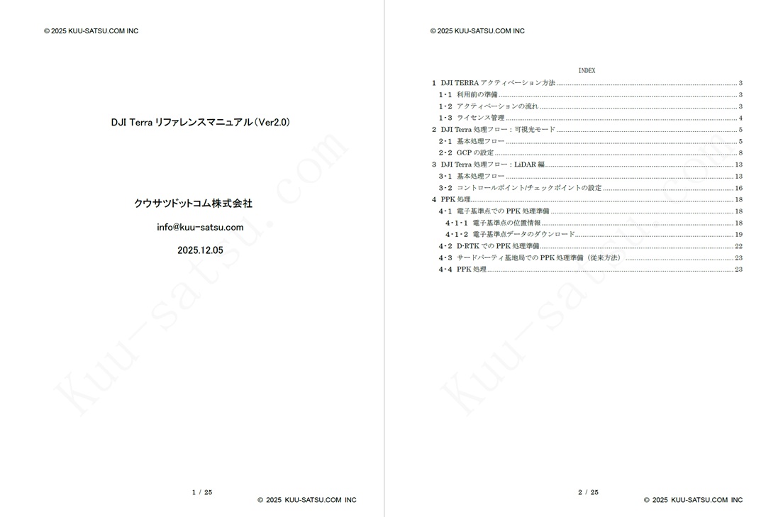 本マニュアルは弊社オリジナルとして、DJI Terraの有償ライセンス、Zenmse P1、Zenmuse L3に付属します。本マニュアルがお役に立ちましたらありがたく思います。