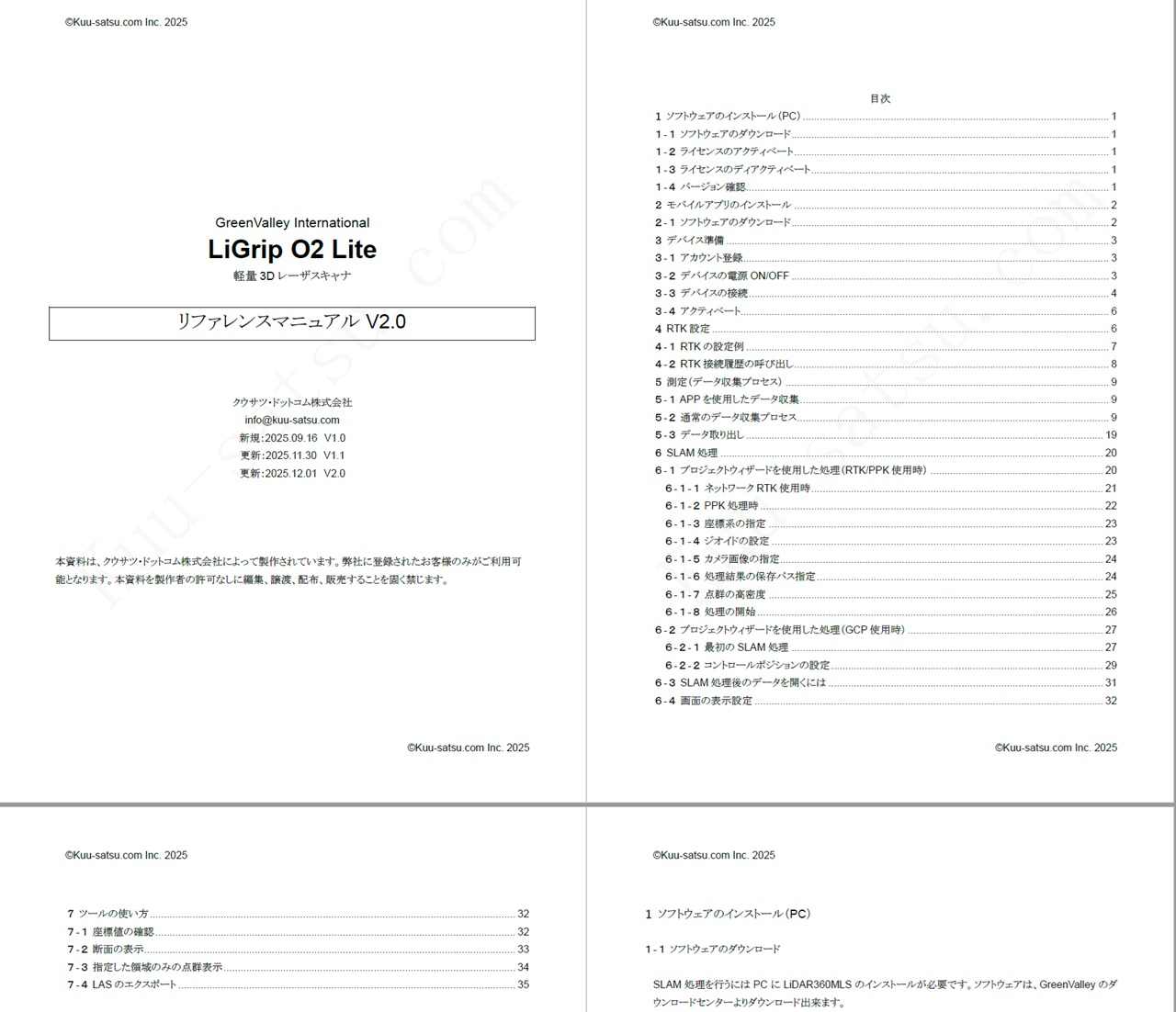 弊社にて実際に使用し、アプリの初期設定、RTK設定から測定後のPCでの処理まで、全15ページに凝縮。日本のRTKや座標系の図例を元に説明があり、どこよりもわかりやすくまとめたマニュアルです!。