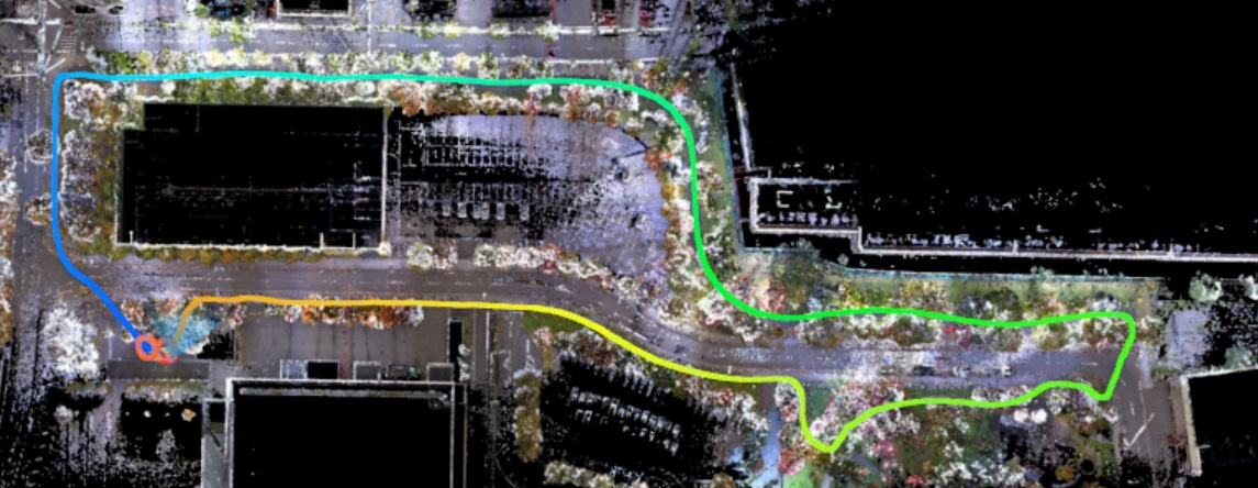 今回は長い距離のループを描きましたが、全てにおいて、IMU蓄積誤差によるレイヤーとXY方向のズレが発生しておりませんでした。RGB表示ではいくつかの場所に置いてレーザとRGBのズレがみられますが、これはIMU蓄積誤差によるものでなく、強度表示においては問題は見られませんでした。