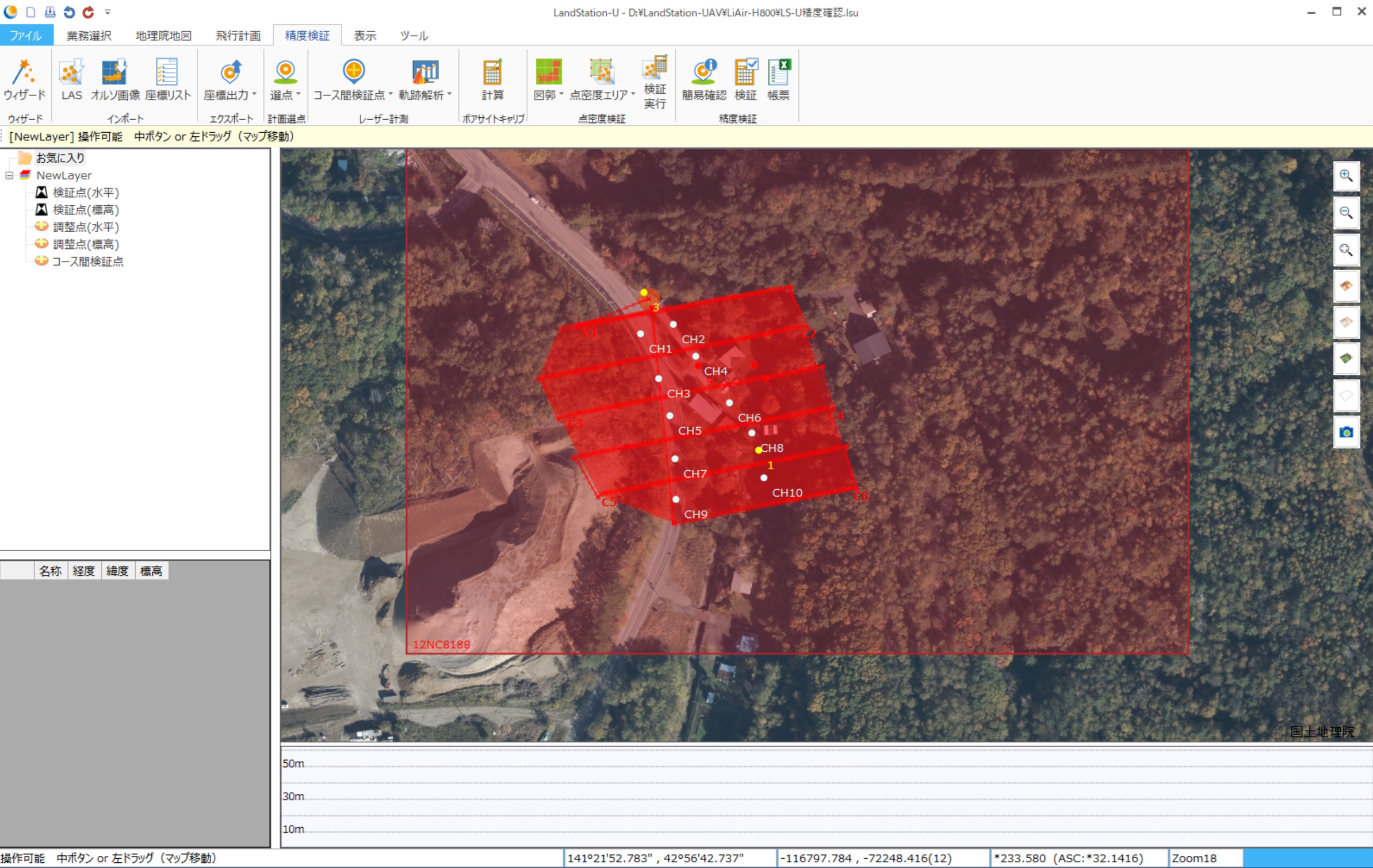 - 読み込んだ座標がX/Yが逆になっていないでしょうか。反対にしてお試しください。座標を再度読み込む場合は、LS-Uを再度起動して読み込んでください。